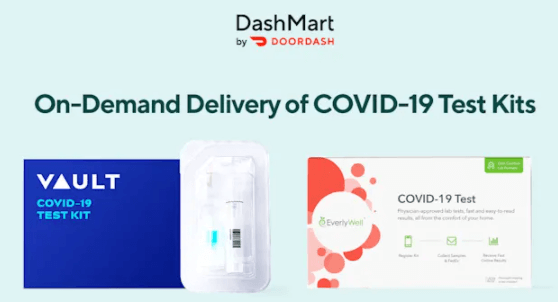 DoorDash는 사람들이 그들의 앱에서 직접 COVID-19 테스트 키트를 주문할 수 있도록 하기 위해 두 개의 디지털 헬스 회사와 제휴를 맺었습니다. 이들은 가정에서 사용하는 COVID-19 테스트 키트를 만들었는데, 이는 바이러스에 감염되었는지 여부를 확인하기 위해 집에서 스스로 진단을 해볼 수 있는 진단 키트입니다. DoorDash의 새로운 제품은 EveryWell의 COVID-19 테스트 키트 DTC와 Vault Health의 침을 채취해서 진단을 하는 테스트 키트로 구성이 됩니다.