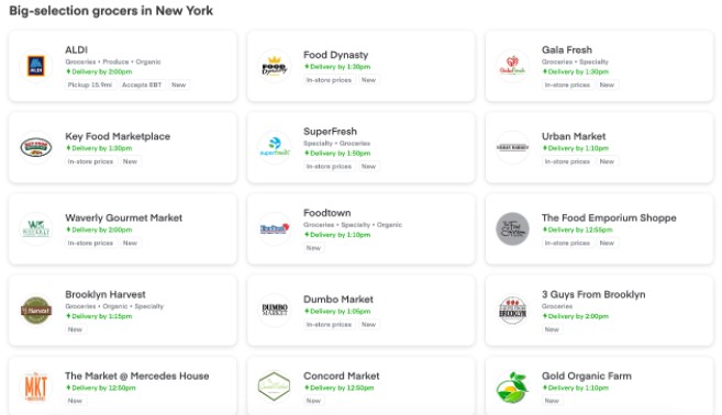 Ralphs, Safeway, Sprouts Farmers Market, Stater Bros스 등 300개 이상의 매장에서 30분 배달 서비스를 시작합니다. 그 동안 45분 및 60분 배송 기간을 특정 장소에서 이용할 수 있었으며, 현재는 불특정 다수의 추가 시장으로 확장하고 있습니다.